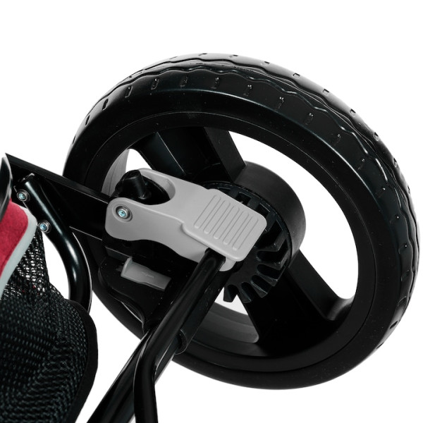 Максимална безопасност и комфорт: 5-точков предпазен колан с омекотители, предпазен гриф, лента за китка и стабилна алуминиева рамка със здраво шаси и амортисьори – осигуряват плавно и сигурно возене във всякакви условия.