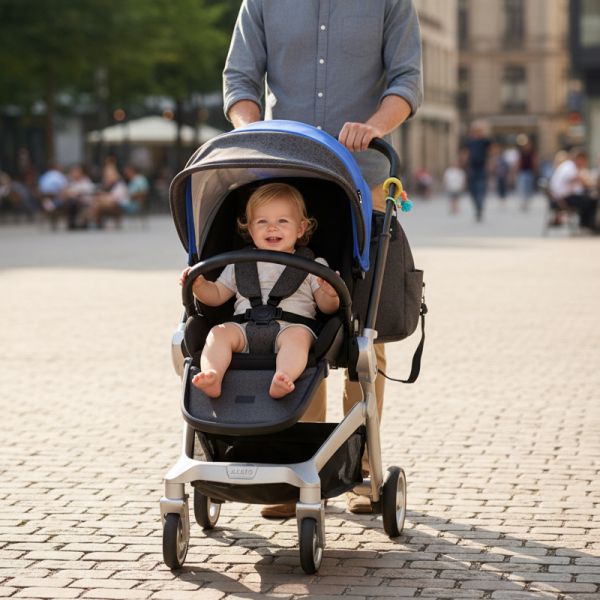Трите компонента могат да се монтират и демонтират на шасито бързо и лесно в две посоки - с лице към родителя или по посока на движението;