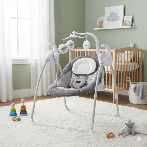 С удобен таймер, вие можете да изберете продължителността на люлеене - 8, 15 или 30 минути. Възможността за регулиране на презрамките на 5-точков предпазен колан осигурява максимална безопасност за вашето дете.